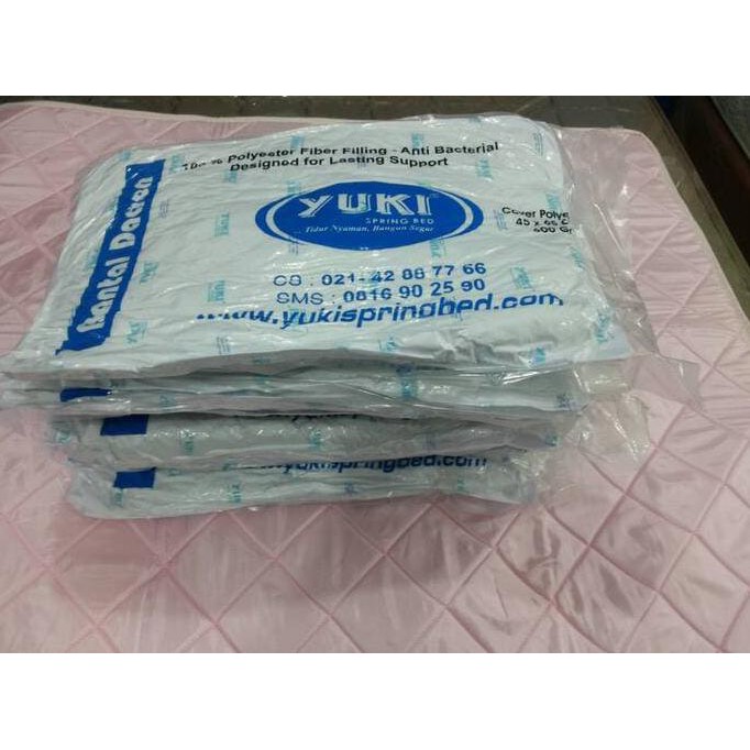 Selamat datang di store kami kak BANTAL DACRON ASLI MERK YUKI SPRINGBEDJadi kalau Pesan Guling disini yang dikirim tetap BANTAL. ( No Complain )ukuran BANTAL : 45 X 65 CM berat 600grManfaat Bantal Untuk Kesehatan TubuhSaat tidur, pastinya bantal menjadi salah satu teman terbaik yang selalu Anda gunakan. Bantal merupakan alat yang bisa menopang kepala saat tidur, sedangkan guling dapat menjadi benda yang Anda peluk agar tidur semakin nyenyak.Tahukah kamu, jika kedua benda tersebut bukan hanya seonggok benda tak bernyawa namun juga memiliki manfaat yang cukup besar khususnya untuk kesehatan saat tidur?Bantal Guling merupakan perlengkapan penting yang sangat dibutuhkan untuk menunjang kenyamanan bersantai atau beristirahat di kasur.Selain memberikan kenyamanan, bantal dan guling juga mampu memberikan efek beragam manfaat positif lainnya untuk tubuh. Apa saja manfaatnya? berikut ragam manfaat bantal guling yang perlu Anda ketahui.Efek KesehatanPemilihan bantal guling yang tepat ternyata sangat berperan menunjang kesehatan penggunanya, terutama setelah bangun tidur. Bantal serta Guling yang empuk, dapat memperlancar aliran darah ke otak dan mengurangi kram leher.Sebaliknya, Bantal dan Guling yang terlalu keras akan membuat saraf-saraf di sekitar leher menjadi tegang dan kram ketika bangun. Oleh sebab itu, hindarilah memilih bantal guling berbahan keras yang dapat menganggu kenyamanan di tengah waktu istirahat Anda.HATI2 dgn merk lain. isinya hanya sampah / busa bekas.BANTAL merk YUKI DACRON ASLI. TERBUKTI KWALITASNYA Terimakasih atas kunjungan AndaSilahkan diorder|Janagn lupa ya kak bintang 5 dan ulasannya