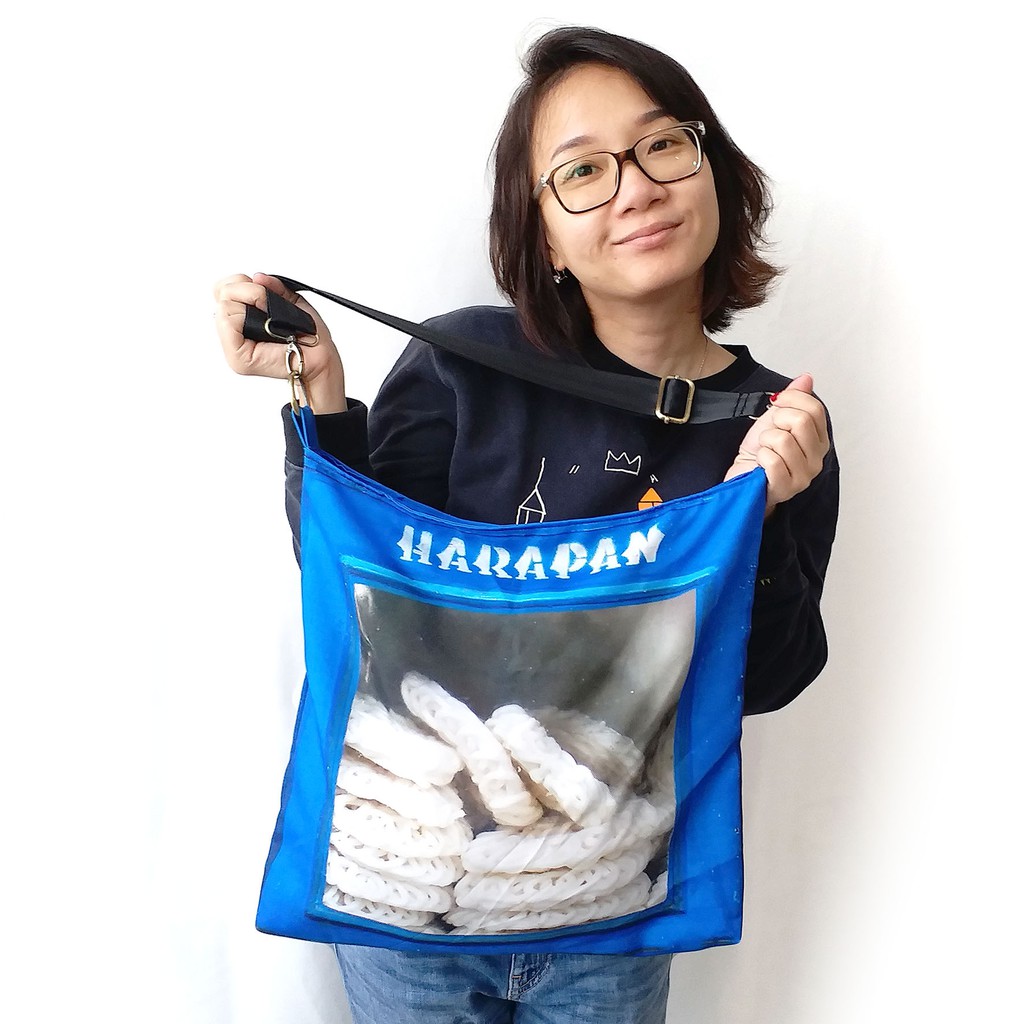 DESKRIPSIBerhenti berharap dan mulai gunakan tas ini. Buat kamu yang selalu berharap atau untuk hadiah gebetan kamu juga ok, karena ada "HARAPAN" nya.... wkwkwk.... DESAINSesuai foto, ada tulisan "HARAPAN", belum bisa custom.WARNAWarna desain sesuai foto, ada perbedaan sedikit wajar karena pencahayaan ruangan serta gambar yang sama, dibuka di handphone, PC, bisa ada perbedaan saturasi / tingkat terang dan gelap. SPESIFIKASIBahan : Drill / Canvas Crafting (tipis), randomFuring : Satin Velvet coklat / Suede cream, random Tali: Tali nilon hitam 3 cm - 3.8 cm [random tergantung persediaan]Ukuran : Bagian luar 38x38x2cm. Ada variasi +/- 2 cm karena variasi jahitanBerat : 300 gram +/- 5% karena variasi furingTas dijahit satu-per-satu dan bukan hasil pabrikan dengan mesin / robot. Akan ada beda jahitan minor antara tas satu dan tas lainnya. Mohon pengertiannya.Dicetak dengan tinta yang bersertifikasi Oeko Tex 100 Class 1, artinya aman bagi kulit manusia sampai kulit bayi. KETERANGANHarga tertera adalah untuk 1 tas. Stock terbatas karena hanya mock up / bantu jual, jika sudah habis akan dinonaktifkan. Jangan lupa membaca T&C toko.CUSTOMMaaf belum bisa custom ukuran. Jika perlu tas custom, desain custom, atau ukuran custom bisa langsung ke SHRELO Print Tekstil. Produk di sini hanya produk jadi