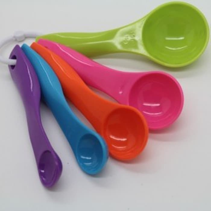 (Harga di atas adalah harga untuk 1 set = 5 sendok takar)Set sendok takar plastik dengan 5 ukuran berbeda: 1.25ml, 2.5ml, 5ml, 7.5ml, dan 15ml. Anda tinggal mengombinasikan sendok takar tersebut untuk mendapatkan ukuran lain. Selain dipergunakan di dapur untuk meracik resep, set sendok ini tentu juga dibutuhkan saat pemberian obat. (Informasi tambahan: 1 sendok minum = 5ml, dan 1 sendok makan = 15ml).Ukuran: 12*4cm (sendok terbesar)Warna: Acak (maaf, tidak bisa memilih warna dalam 1 set)Bahan: Pla