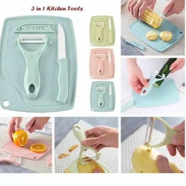 Pusat Grosir Perlengkapan di Kabupaten Karanganyar Promo Alat Mpasi Pisau Set Keramik 3 In 1 / Talenan + Pisau Set + Peeler Pengupas Kj4 dari Tidak Ada Merek Kota Jakarta Selatan