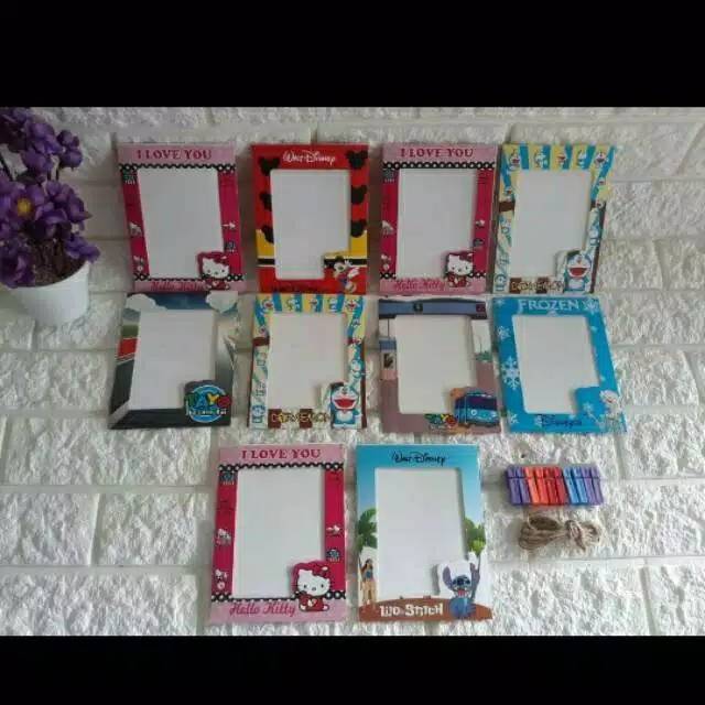 FRAME FOTO GANTUNG KARAKTER UKURAN 4R1 SET SUDAH CAMPUR'' SEPERTI DIGAMBARISI 10 FRAME + 10 JEPIT +