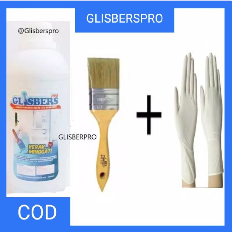 FREE KUAS & SARUNG TANGAN YA KAKAK HARGA GROSIR TIDAK FREE KUASGlisber dengan inovasi yang terbaru lebih dijamin kualitas nya , hati hati dengan barang tiruan yang serupa merk yang lain dari nama GLISBER sudah dapat dipastikan KEPALSUAN-nya karena dari dulu saat produk ini terbit hingga saat ini nama glisber tetap TIDAK PERNAH MENGALAMI PERUBAHAN !!! Produk yang sudah terjamin keasliaanya hanya produk GLISBERS BUKAN GP PRO ataupun lainnya . Be smart buyer GLISBERS Clean Power merupakan penemuan baru Dengan formula unggul dan tepat, mampu membersihkan noda kerak dan membandel pada porselen dan keramik. Keunggulan GLISBERS dibandingkan dengan pembersih lain: - Tidak merusak nat (sambungan keramik)- Tidak berbau menyengat- Tidak gatal/ perih di tangan- Lebih hemat dan murah. Dengan menggunakan sedikit GLISBERS mampu mengusir noda membandel.Cara penggunaan GLISBERS cukup mudahyaitu :1.tempat yang akan di bersihkan usahakan kering 2.Tuangkan cairan GLISBERS ke dalam sebuah wadah. Dan usahakan cairan glisbers tidak tumpah ke lantai dlm wkt lama3.GUNAKAN KUAS CAT YG UKURAN BESAR/4 DIM (UJUNG KUAS YG HALUS DIPOTONG TERLEBIH DAHULU ) 4.celupkan kuas ke wadah yg berisi cairan 5.Kemudian oleskan KUAS pada permukaan keramik yang ingin dibersihkan.6.Setelah dioleskan, tunggu beberapa menit lalu sambil dikuas2 di keramik yg kotor7. siram dengan air bersih dan lihat hasilnya.Langkah tersebut dapat diulangi jika masih ada noda yang belum bersih.Sederhana bukan??#99ShopeeSuperSeller#glisbers #permbersihbotol #glisberspembersihporselen#pembersihporselen#pembersihkerak#pembersihkamarmandi#pembersihkerakair#pembersihkerak#penghilangkerak#pembersihkeramik#pembersihkamarmandi#glisberspro#glisbers#glisber#porselen#pembersihkerak#agengl