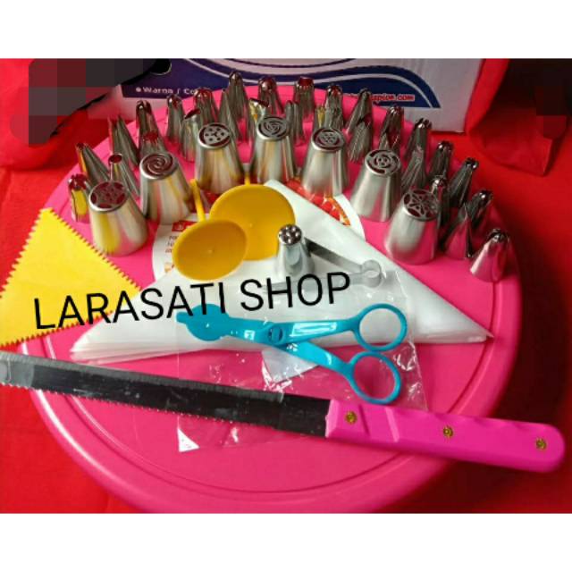Harga Gila Perlengkapan di Kota Tasikmalaya Dekor Set Meja Putar Hias Kue Lengkap Spuit Rusia Original dari Cetakan Kue Larasati Shop Kab. Bogor