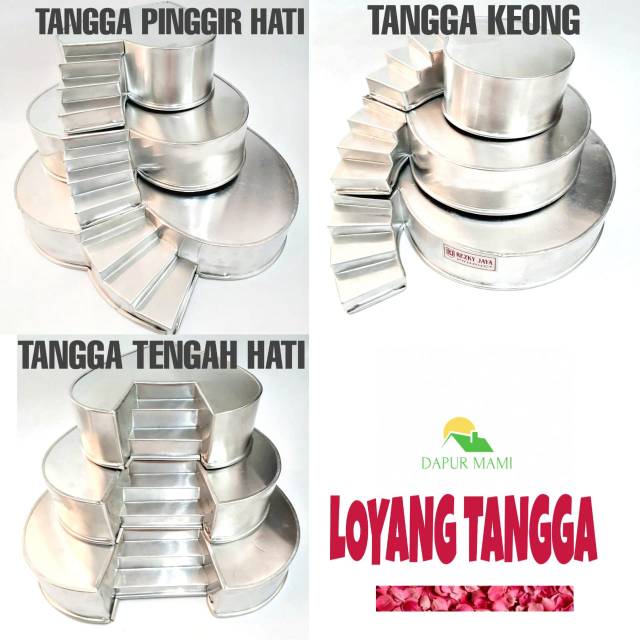Deakripsi Produk : Bahan : aluminiumUkuran : Tangga pinggir hati : 14x18/ 20x24 / 27x30 cmTangga tengah hati : 15x13 / 18x20 / 25x27cmTangga keong : 12x18 / 20x24 / 25x30cm1 set isi 3 ukuran Foto adalah bagian dari hasil karya tim dapur mami berdasarkan real product ( barang sesungguhnya ).Terimakasih atas kesediaannya untuk tidak memakai foto tanpa seizin pihak kami. Harga yang tertera adalah harga per setBarang fragile / mudah pecah / mudah penyok. Untuk pengiriman luar pulau dan luar kota harap attach tambahan bubble atau tambahan dos dibagian lain etalase kami.Mohon memperhatikan deskripsi produk yang ada difoto dan di kolom deskripsi.terima